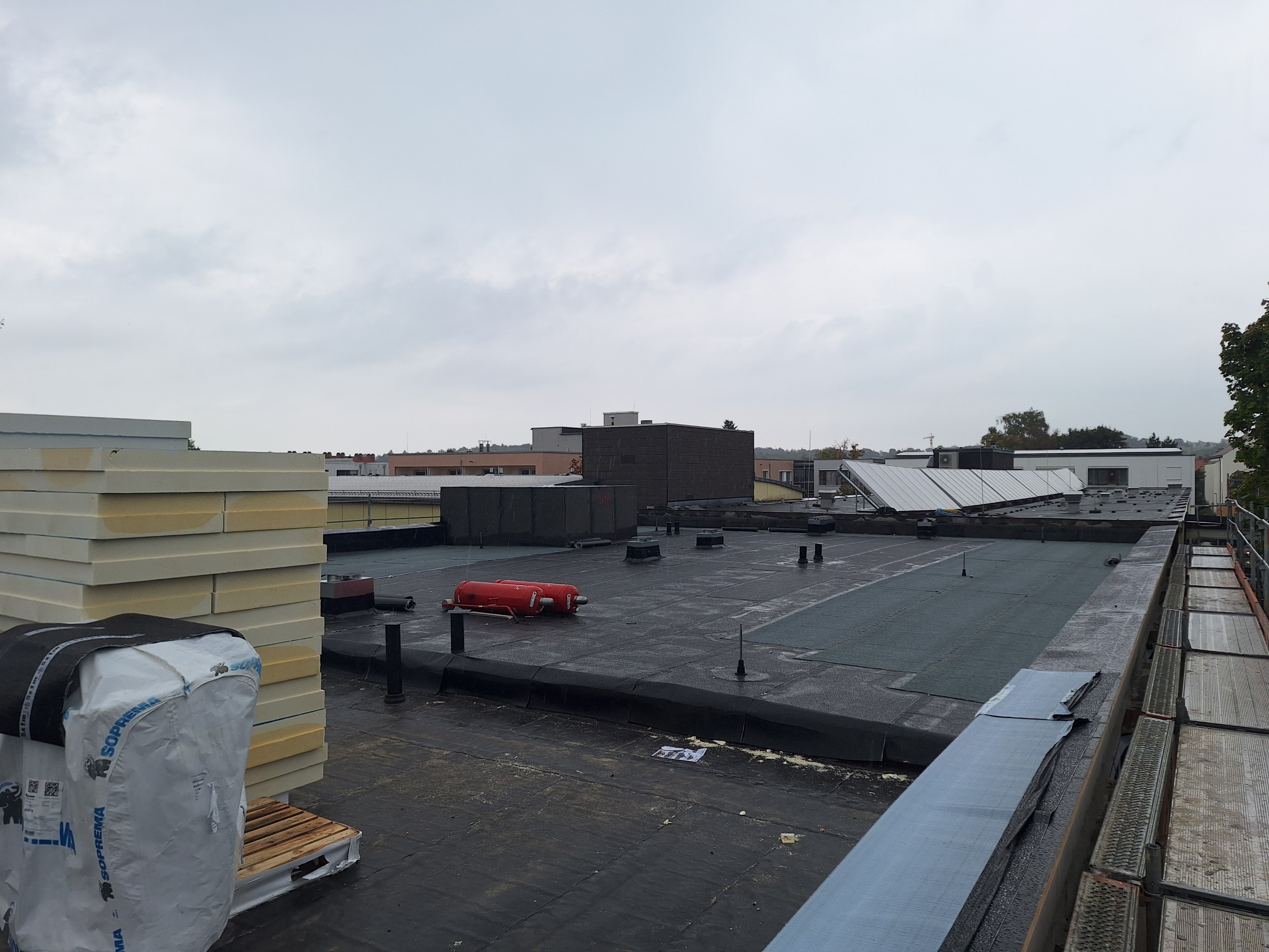 Die Rohbaumaßnahmen am Neubau sind nahezu abgeschlossen, bis zum Wintereinbruch wird nun verstärkt an der Außenhülle gearbeitet um die Wintermonate über in einer geschlossenen Hülle das Arbeiten zu ermöglichen. Die Dachabdichtung des Neubaus ist zu großen Teilen bereits fertig gestellt, allerdings werden die Dachbegrünung und die Photovoltaik erst im nächsten Jahr gemacht werden können.